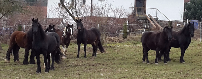 Also auf dem Zeidlerhof wohne ich in einer Wohngemeinschaft mit 7 anderen Pferden. In diesem Bild seht ihr alle: von links Benny (der Braune ohne Kopf), Goody, Jackson, Artax, Mona, Lotte und
